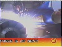 Final shot is textless, unlike source. Cuts follow-up close-up of helmet, then of Turbine Org reacting. |