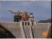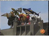 Red Lion leads the Wildzords into joining the Rangers on the dam. |