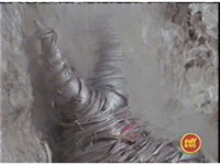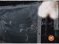 The Org spirit floats under a bridge, past a parked car, then reaches some barbed wire, which it begins to mimic. |