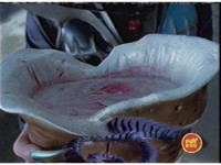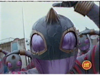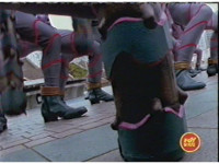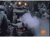 The Rangers react, Toxica gestures up to the giant Barbed Wire Org, who then tries to step on the Rangers, but they jump out of the way. |