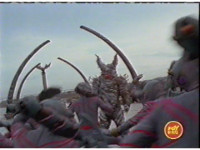 Cuts shot 6 before Japanese text appears; cuts follow-ups of Putrid bodies floating to the surface; then cuts Red vs Putrids on beach. |