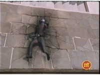 Yellow poses with her clawed gloves, close-ups of her costume details, then she slaps the ground and poses. |