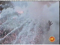 The Rangers jump about face as Barbed Wire Org collapses and explodes massively, the Rangers then turning back around with celebratory gestures. |