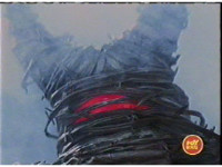 Toxica's wand fires five seeds out, which drop into the green Org goop, then suddenly grow into tall twirling vines, reforming a giant body in a flash, revealing the giant revived Barbed Wire Org. |