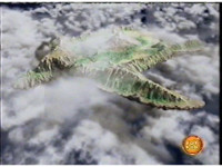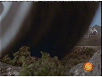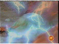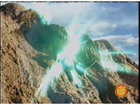 The mountainside gleams as the outline of the Elephantzord appears upon it. |