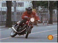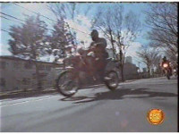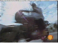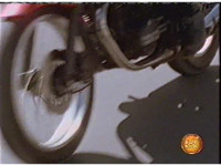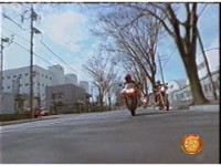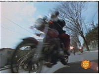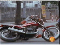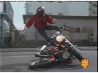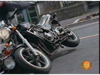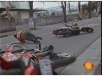 A group of motorcyclists drive on the wrong side of the road (shh!) when Tire Org rolls in, speeds past them and causes a few of them to crash. |