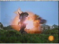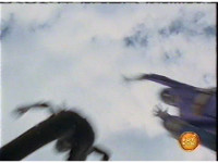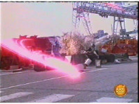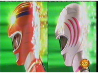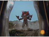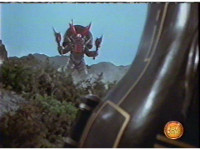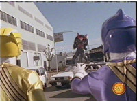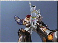 Wild Force Megazord lands, Tire Org charges forth, Blue then White motion their hands forth. |