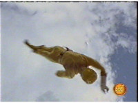 White gestures her hand and nod-talks, as Wild Force Megazord raises its Elephant Sword, and begins to spin around rapidly, slashing Tire Org sparkily with every rotation around him, the Cyclone attack ending with an added slashing. |