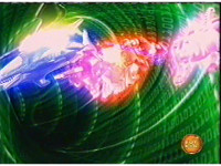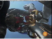 Tire Org breaks out of a hold with Wild Force Megazord, then sparkily slashes it until it falls over, shaking up the cockpit. |