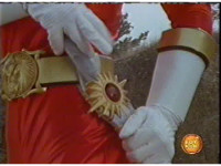 Red leads the team in pointing their Crystal Sabers at a common point together. |