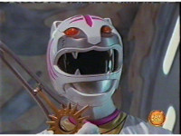 White nod-talks some more, then removes her empty Crystal Saber from the platform, talks quickly, then leaps out of Wild Force Megazord. |