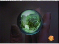 Alyssa holds up the gleaming green Elephant Animal Crystal. |