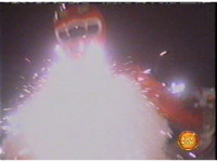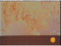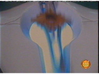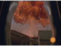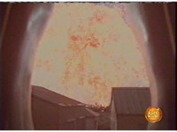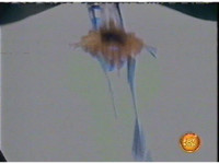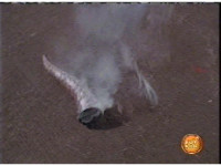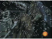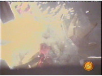 Push in on Blue, as Ship Org spark bursts, explodes, falls over, and instantly rots into crackling foam. |