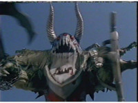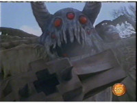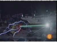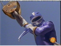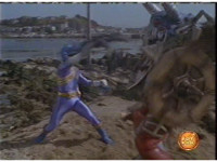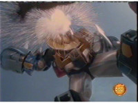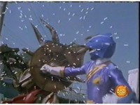 Ship Org readies his anchor and sparkily strikes Wild Force Megazord, causing it to staggers back. |