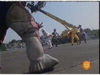 Wild Force Megazord's right Sharkzord arm detaches. |