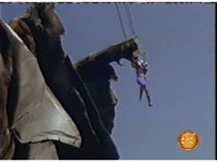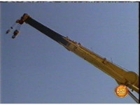 Japanese kid barely visible on crane behind them, cuts shot of Ship Org between shots. |