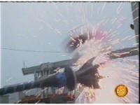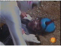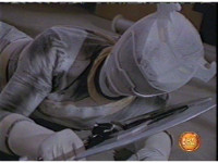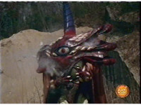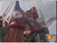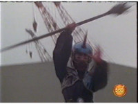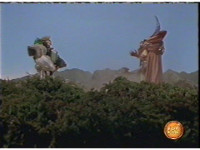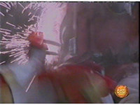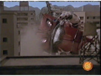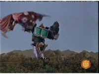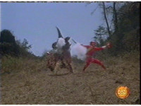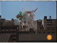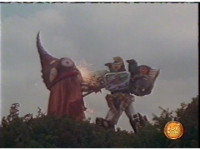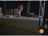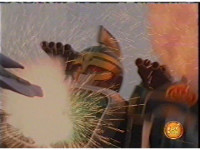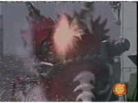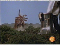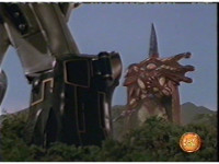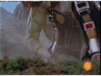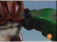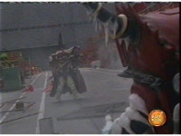Cuts follow-ups of Kongazord beating on Org, using both Bearzord fists, then the Org getting a charge by Retinax, then Kongazord trying and failing to do a flying kick at the Org, getting swung around and tossed away as a result. |