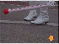 White battles Toxica, Baton to staff, ending up sparkily struck twice by the Duchess. |