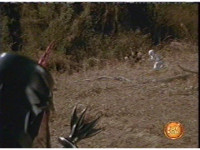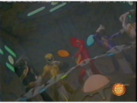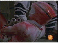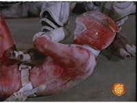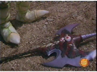 Cuts follow-ups of Red reacting to Retinax's recovery, the Org talks, the Rangers regroup, then Retinax impales himself with Toxica's staff. |