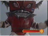 Kongazord sparkily punches Retinax with each fist once, then is about to hit again with its Polar fist twice when the General Org grabs the fist, holds it in place, and talks, prompting Red to respond. |