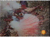 Cuts prior team posing stuff; cuts final shot before Red leaps up; and cuts follow-ups of Red leaping forth, and getting axe struck back. |