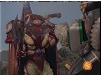 Freezer Org towers gigantically over the scene, and the Rangers react. |