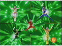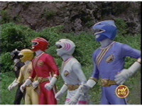 Zen-Aku tosses some Crescent Waves at the Rangers, who spark burst. |