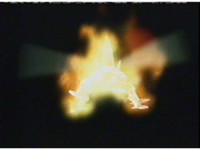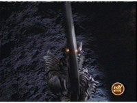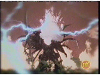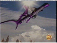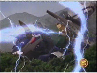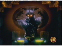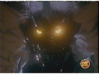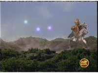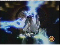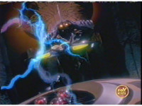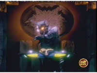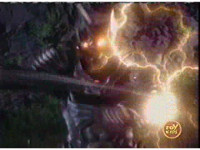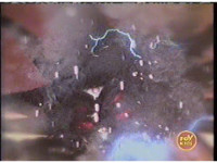 Crackling with electricity, Predazord collapses. Wild Force Megazord Striker Mode watches, Red nod-talking, as the crackling continues, Zen-Aku in the crackling cockpit on his knees gripping his head, until finally the Predazord glows brightly and turns into three glowing balls of light that take off skyward. |