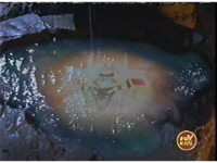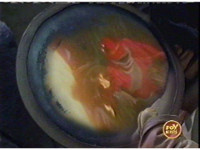Close on Zen-Aku's eye, as he suddenly drops his blade, then grasps his head and begins to freak out all over the cave. |