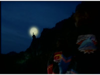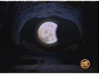 The moon at the entrance to the cave becomes fully uneclipsed. |