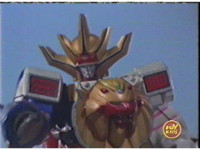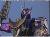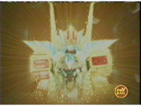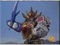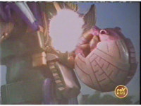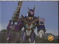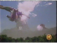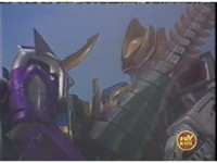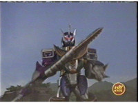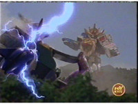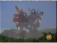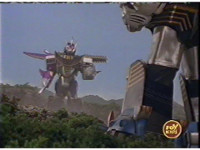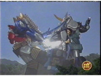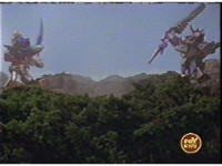 Animus Megazord faces Ancient Master Org, with the latter blasting the former, until it falls over and explodes. |