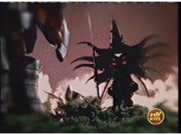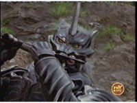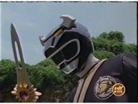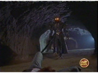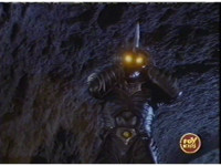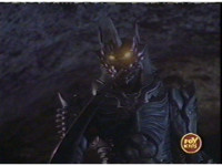 Yellow pulls out her Crystal Saber, speaking, then rushing into battle, Black doing the same, Zen-Aku sparkily slashes his way through each of the Rangers, until Red grabs his blade, so the Wolf Org merely lifts it up and flips him to the other end of the cave. The Rangers regroup, Red speaks, Zen-Aku talks, Red reacts, then Zen-Aku prepares his weapon. |
