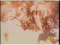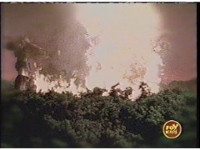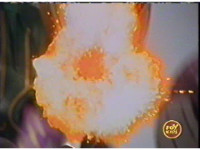 Amid the massive explosion, the Armadillozord bounces out to safety. |