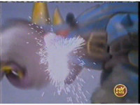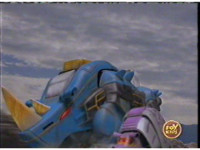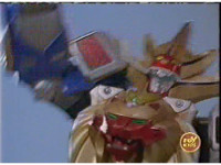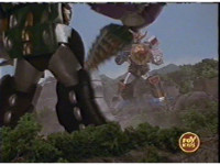 Armadillozord rolls ahead of Rhinozord, who horn-bops him into the air, crashing him into Predazord sparkily. |