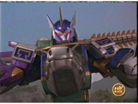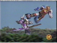 Predazord faces the Wild Force Megazord Striker Mode, which suddenly leaps up. |