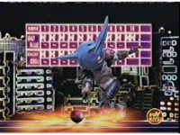 Lunar Wolf readies his Cue, they face off, and Bowling Org rolls his ball at him, the Ranger attempts to hit it with his Cue, but it bounces up and sparkily strikes him, knocking him through some barrels, and leaving him talking in a daze. |