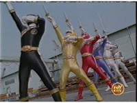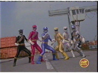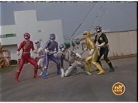 Each Ranger talks and poses with their clawed gloves, finally the whole team beginning to do a group pose. |