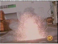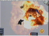 Amid the massive explosion, the Armadillozord bounces out to safety. |