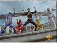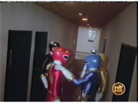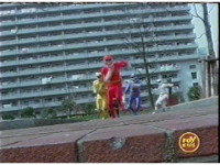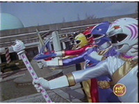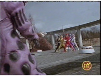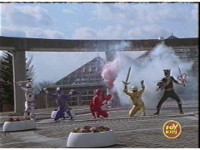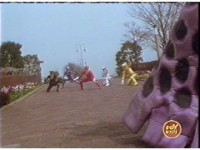 Cuts follow-ups of Zords arriving, and Sharky & Bison knocking Org down. |