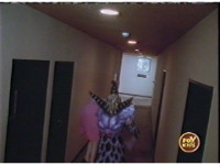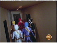 Wedding Dress Org goes up a stairwell, the Rangers following, she heads down a hallway, and the Rangers lose track of her, talking amongst themselves before splitting up and each checking a door. |