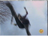 Cuts follow-up of him swinging her around some more, and slamming her into some pillars. |