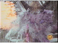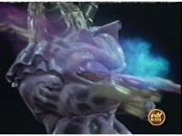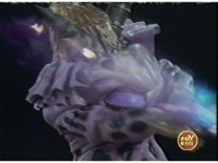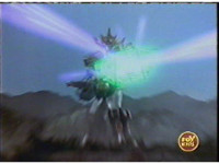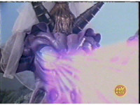 Wedding Dress Org talks, as Wild Force Megazord readies its Fin Blade, and charges ahead at her, she fires electricity from her horn, spark bursting the Megazord. |
