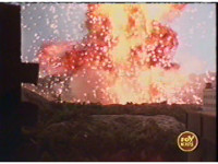 First shot is textless, unlike source; Cuts extra shot of candle flying through air between shots 2 & 3; cuts follow-up of Org bursting up close. |