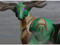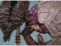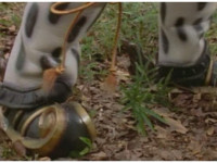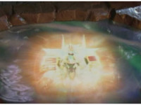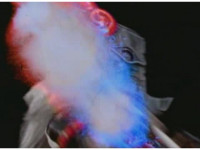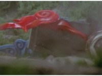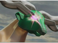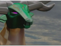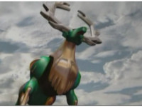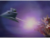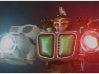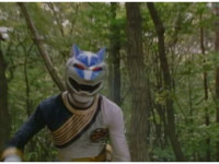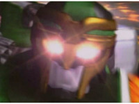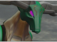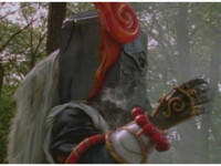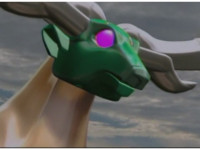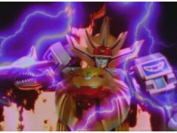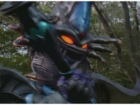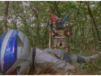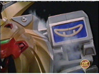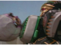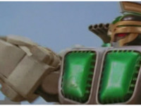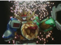 Tombstone Org talks, then fires an eye blast at the Deerzord, who is struck in the neck, but unharmed, she then fires back an antler beam, which creates a pair of antler-cuffs around his body, crackling him until he falls over and goes to sleep. |