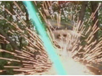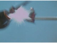 Tombstone Org sparkily spear-bashes the approaching spear, then sparkily cuts off Wild Force Megazord Predator Spear Mode's Giraffe arm, causing it to fall off as the Megazord looks stunned. |