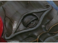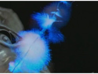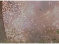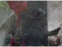 The seeds drop into the green Org goop, then suddenly grow into tall twirling vines. |