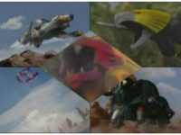 White sticks the Deer Crystal in her Saber, the Rangers point their Sabers in a circle, and Red looks up and gestures, before the four Wildzords being summoned roar and make their way there. |