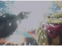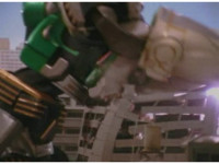 Wild Force Megazord Predator Mode poses fully formed. Tombstone Org talks, then the Megazord punches each of its arms forth, sparkily striking but unharming the Org. |
