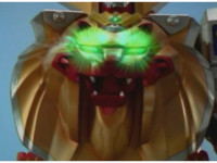 The cockpit straightens up, as Wild Force Megazord Predator Mode stands back up, its Red Lion chest eyes flashing, as Red talks within, and nearby, four of the Wildzords lie injured, while Tombstone Org remains imprisoned and slumbering on the ground. |