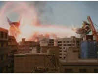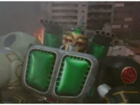 Tombstone Org faces Kongazord Striker in the damaged city. |